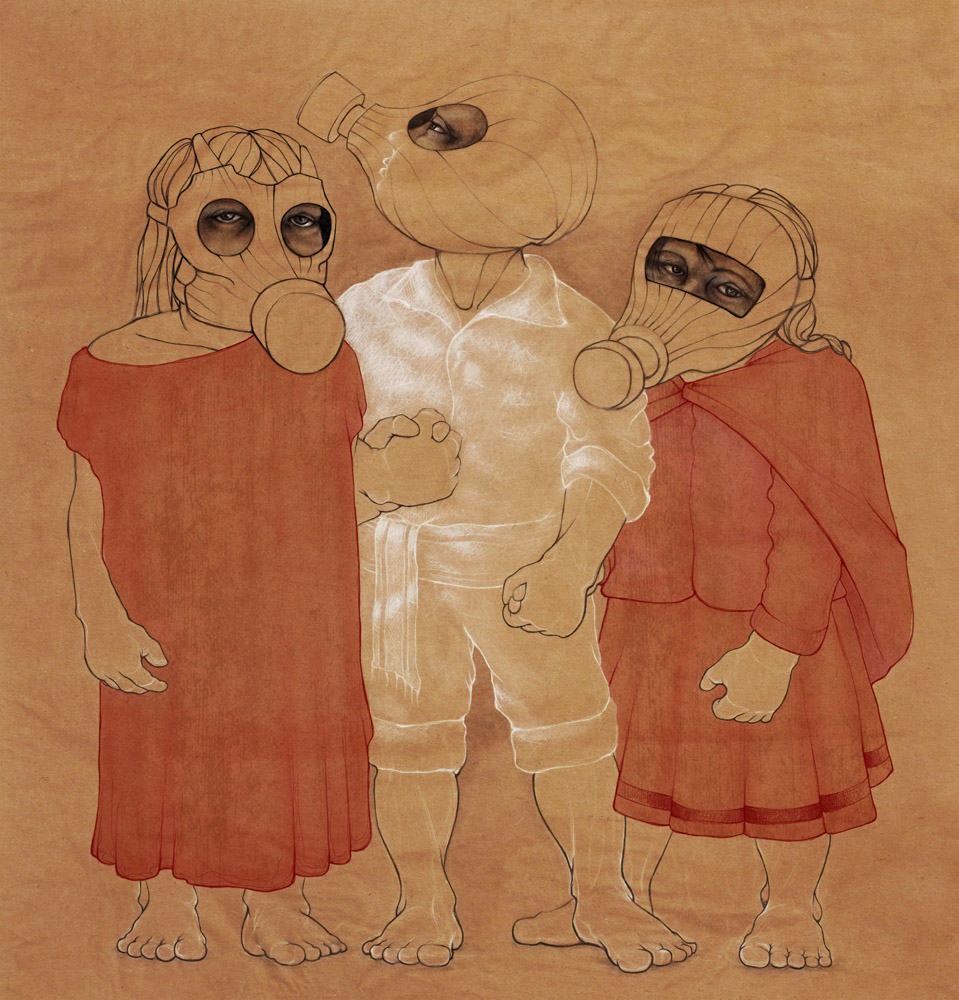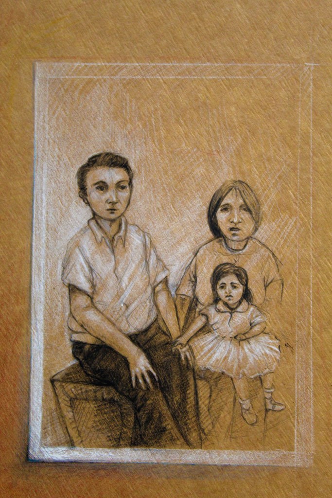 - Grafito, tinta china, oleo pastel sobre papel Craft