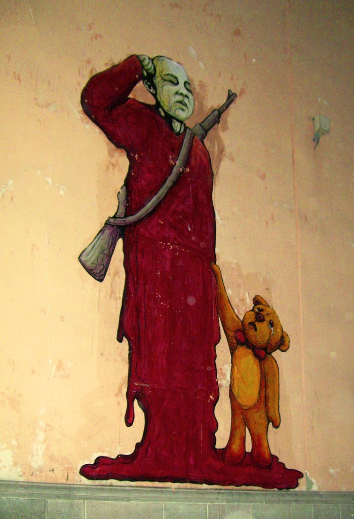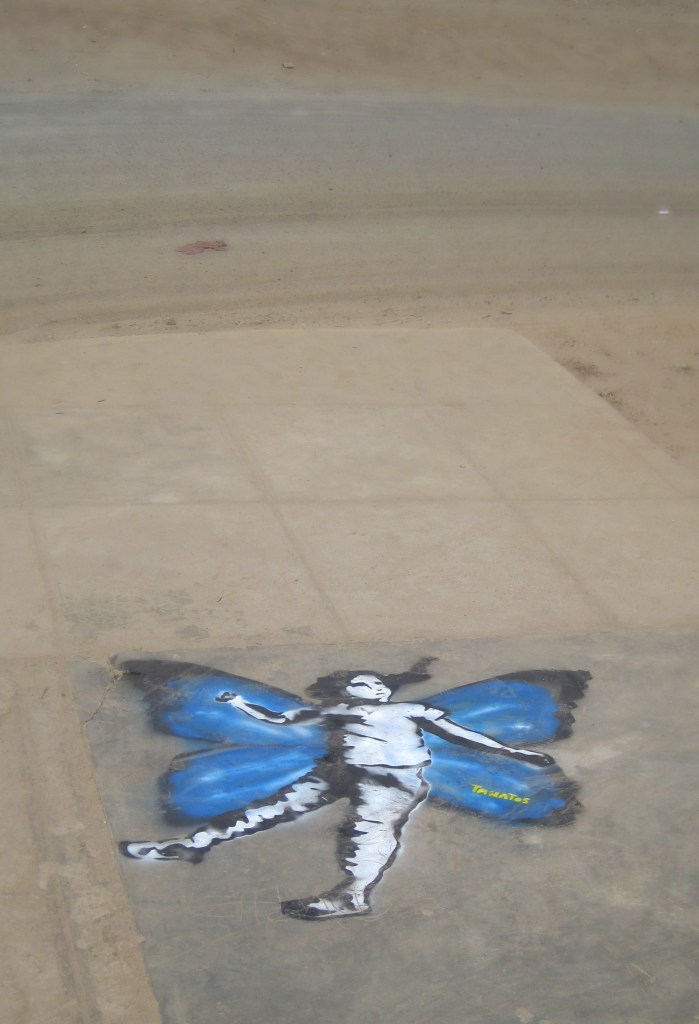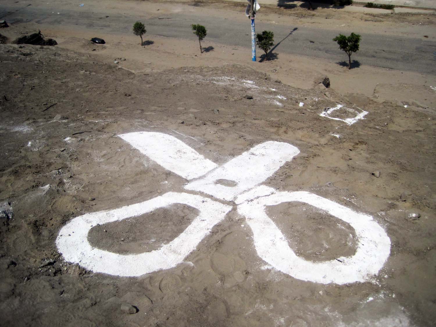 - Intervención de arte urbano sobre carreteras polvorientas y abandonadas por las autoridades.