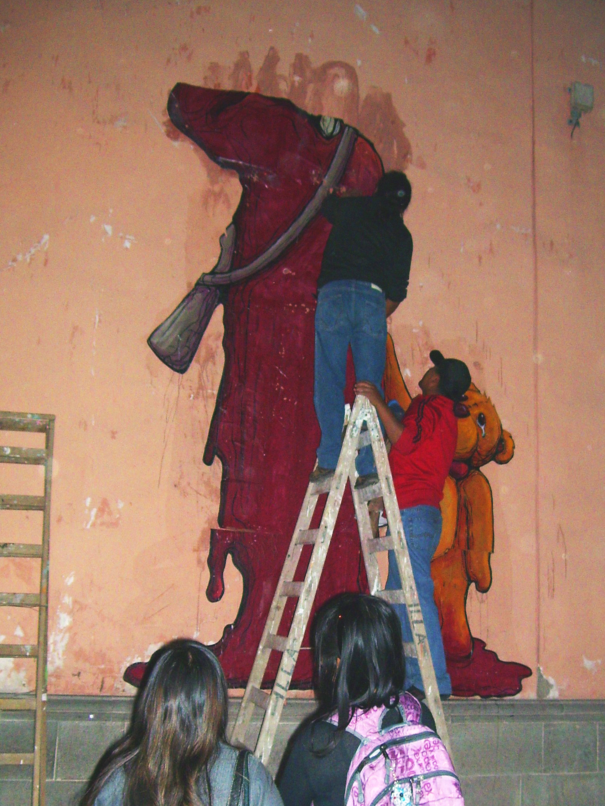 - Intervención de arte razón de la matanza en BAGUA, en medio del conflicto en el Amazonas por las minas y el agua.
